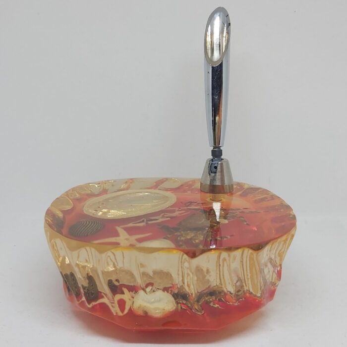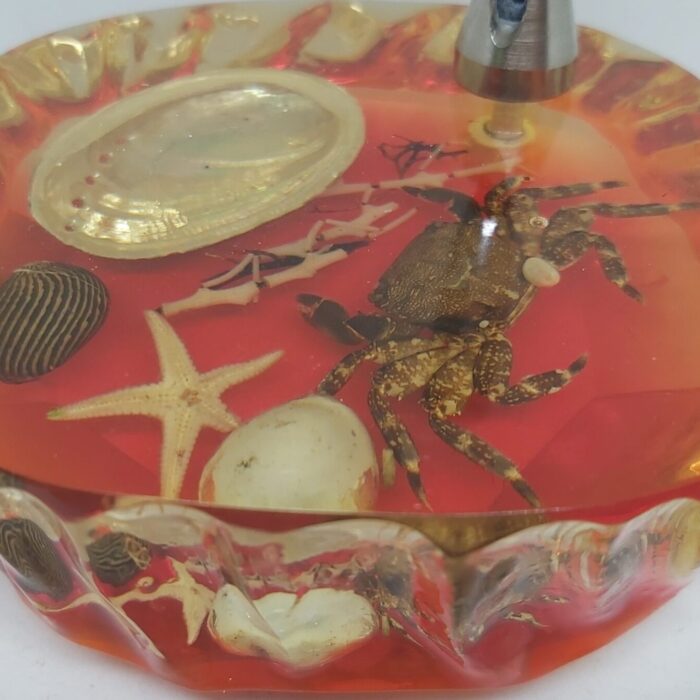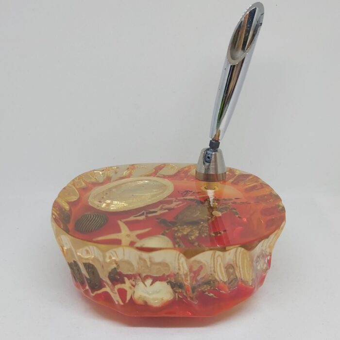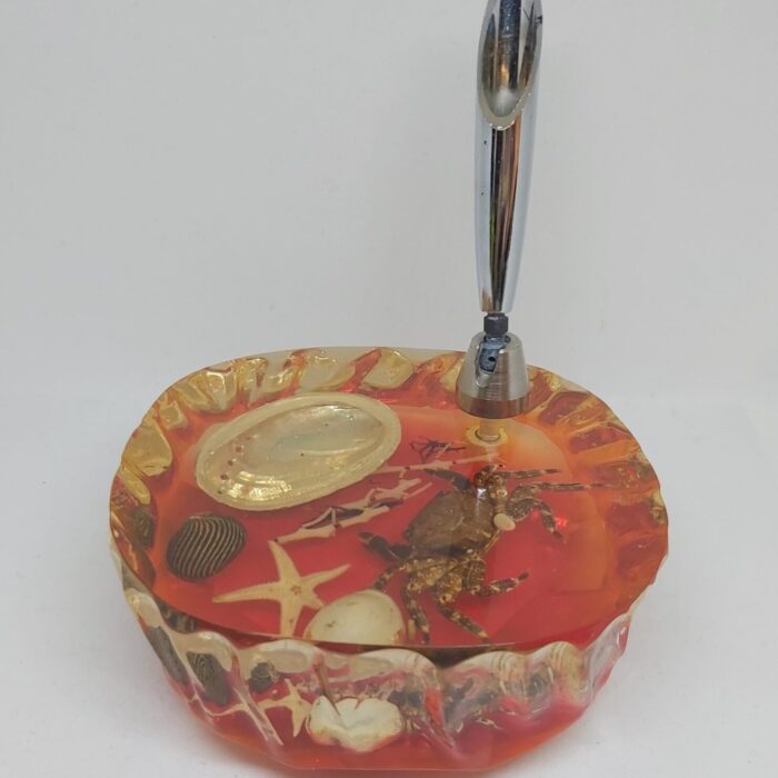 Porte stylo inclusion sous résine crabe et coquillages