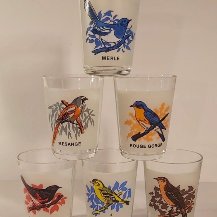 Verres Luminarc des années 60′ décor oiseaux