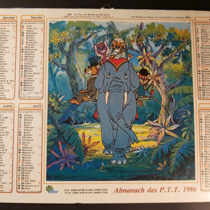Le Tour du Monde en 80 jours calendrier des P.T.T de 1986