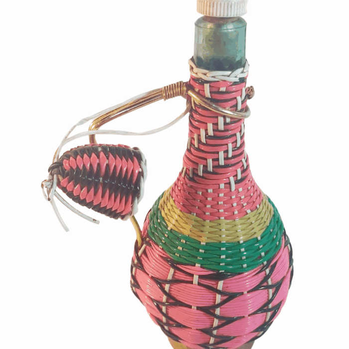 Bouteille scoubidou multicolore des années 60′