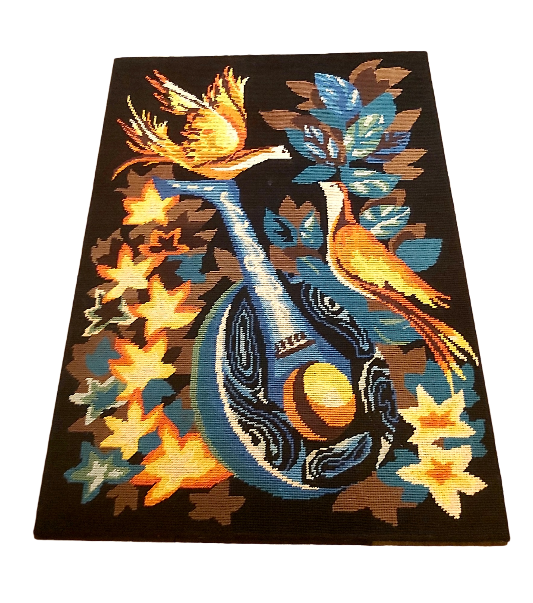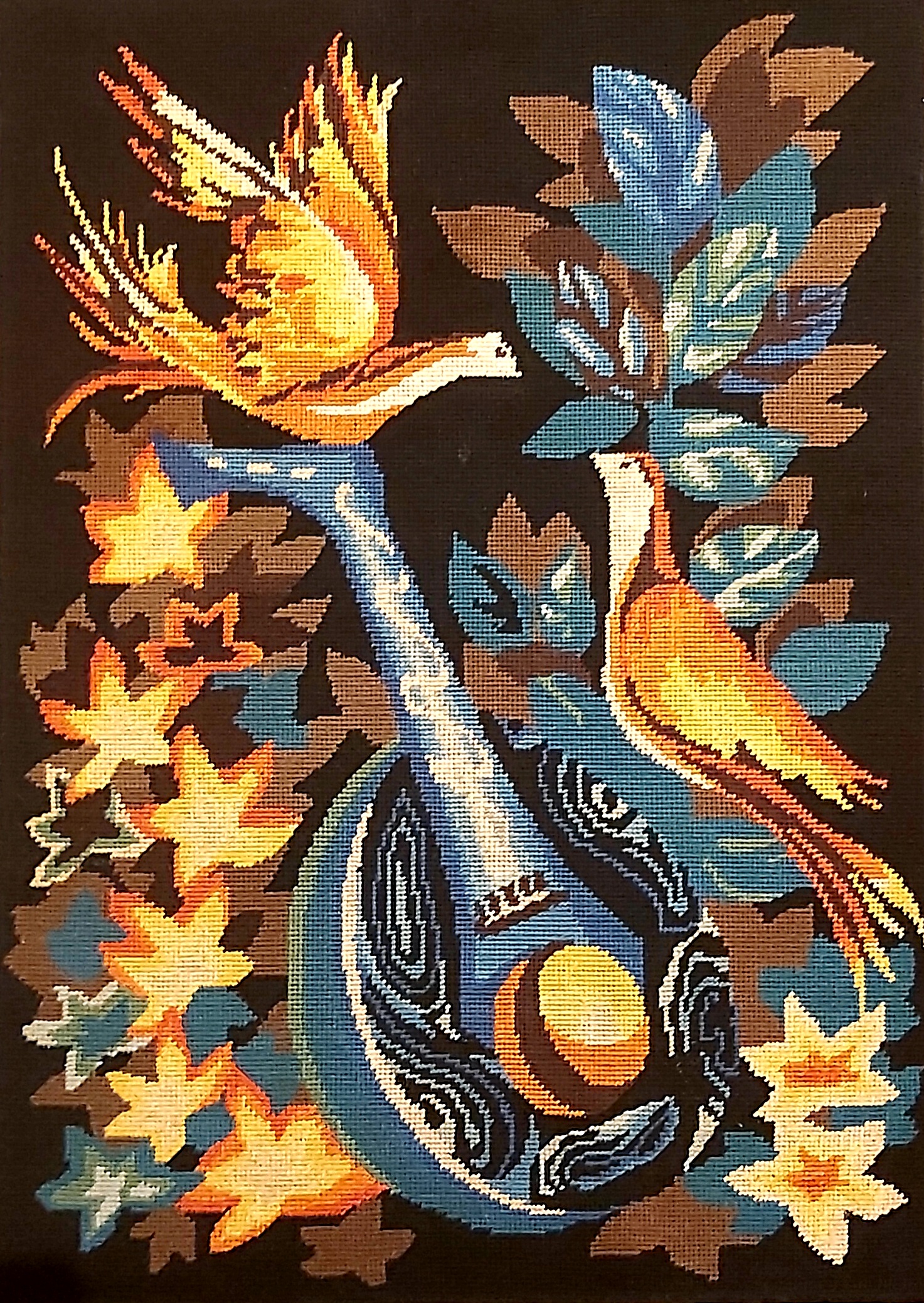 Canevas représentant des oiseaux et un banjo.