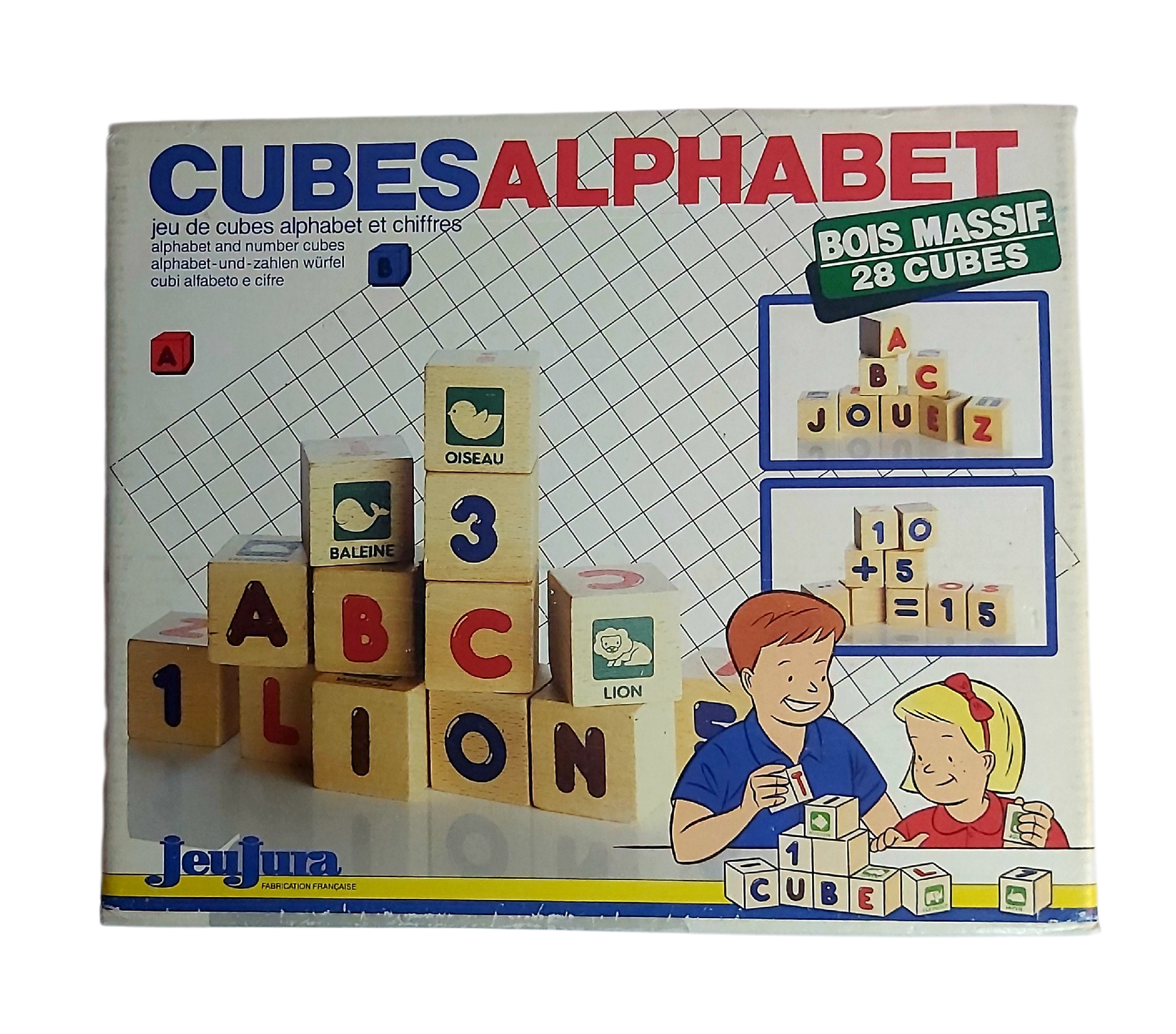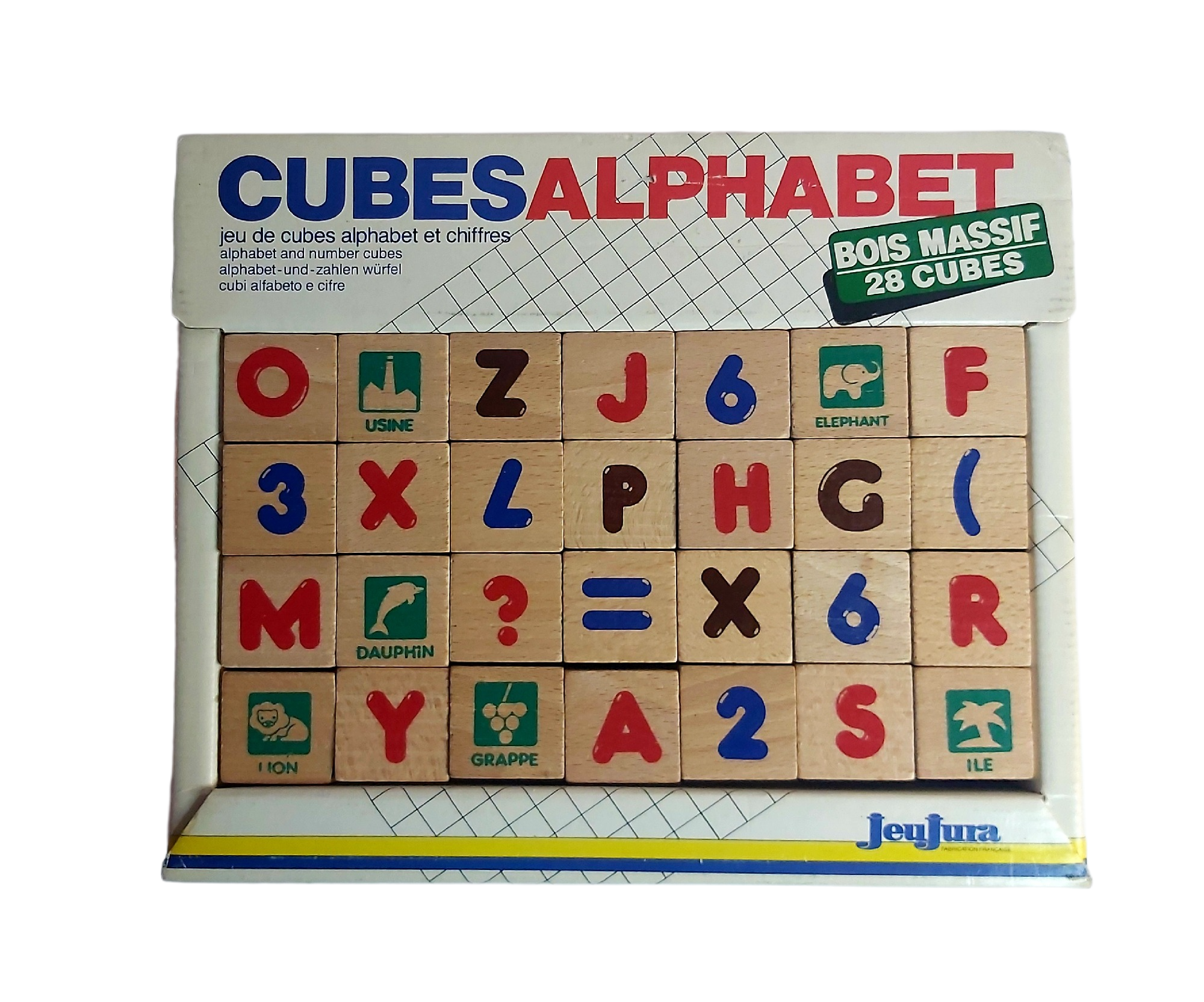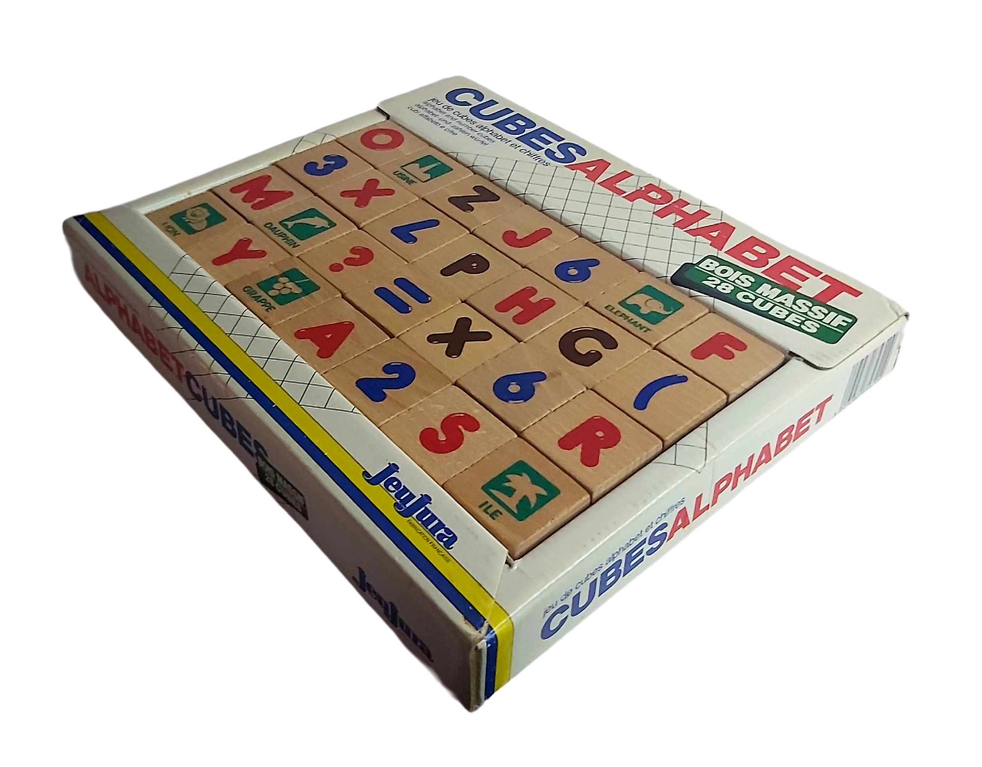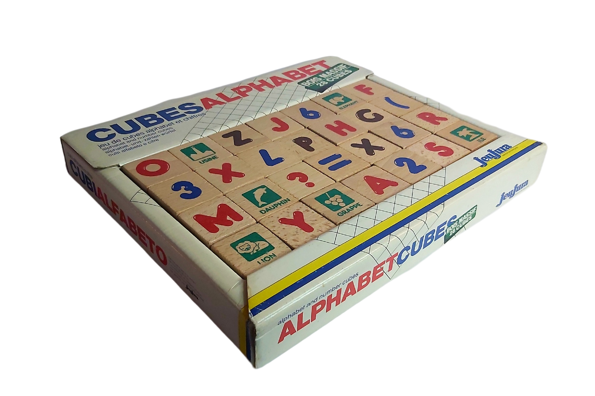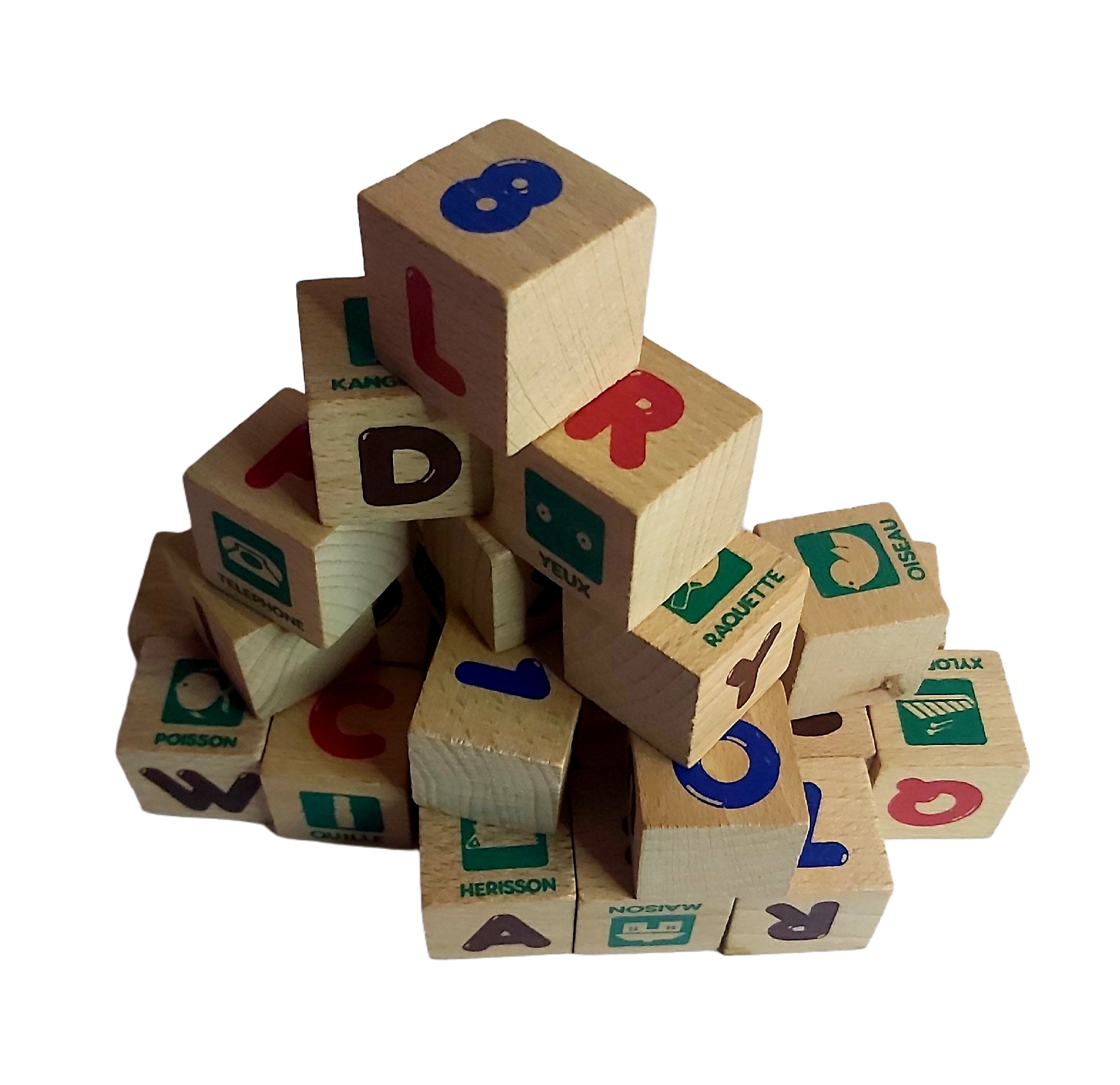 28 cubes en bois massif.