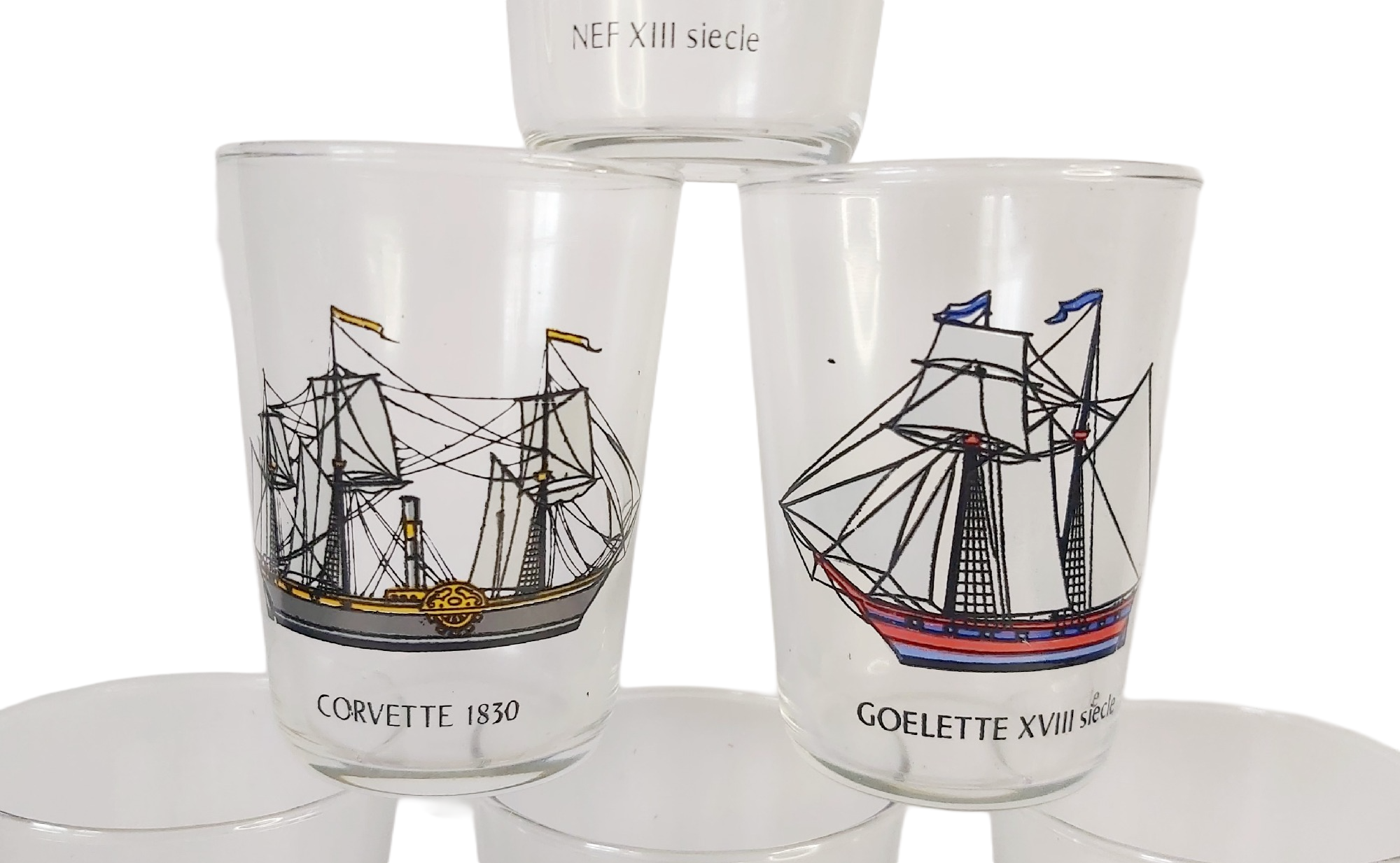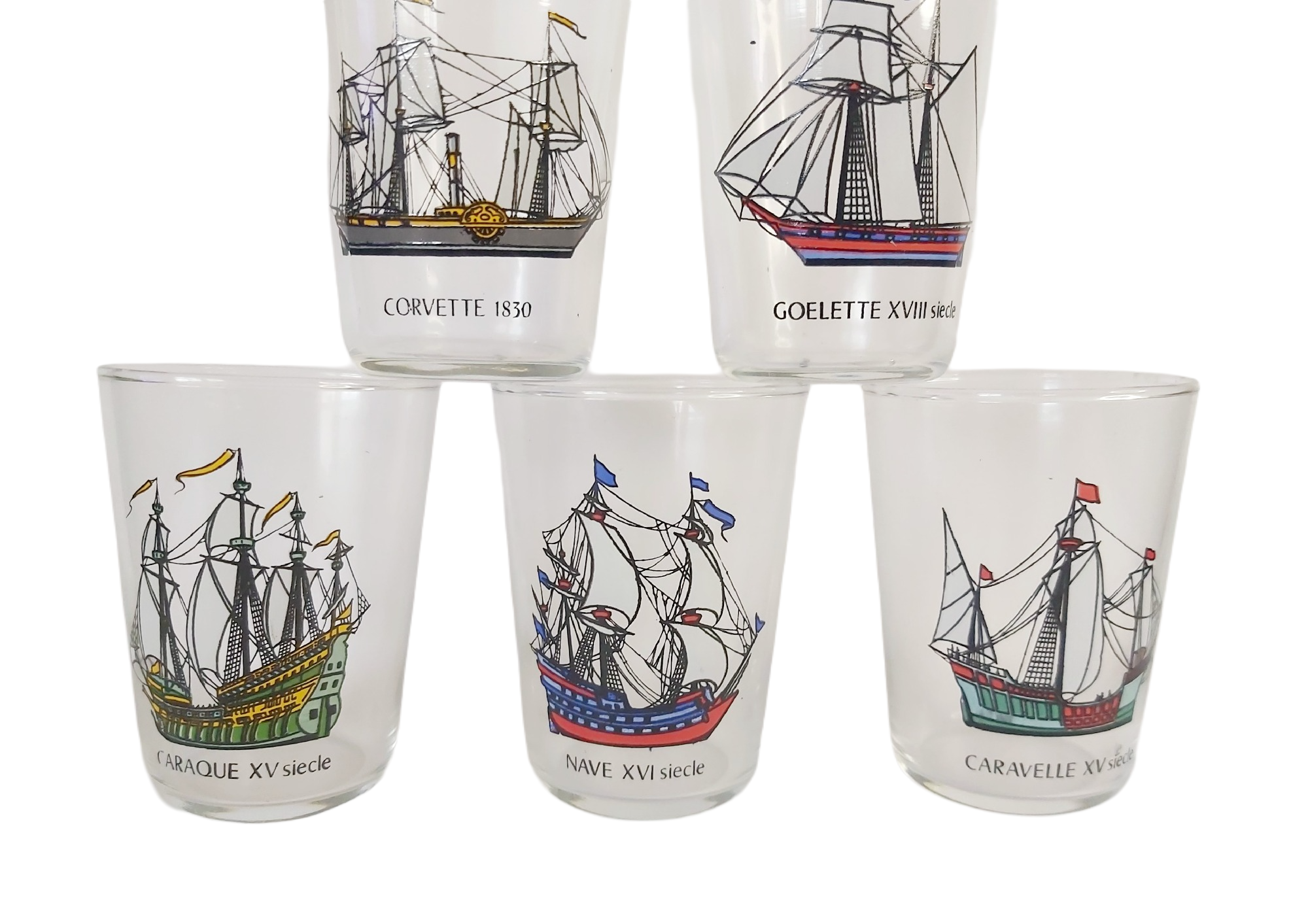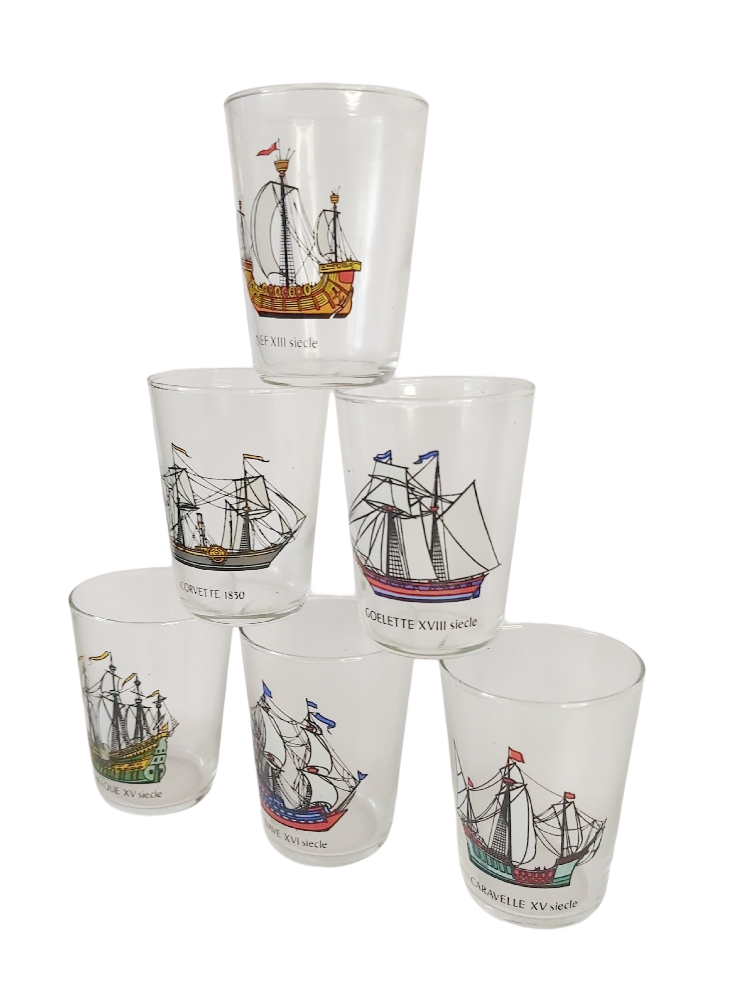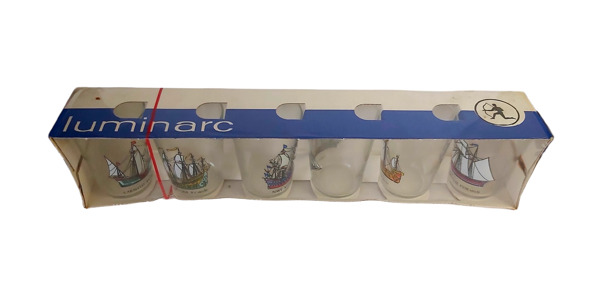 6 verres Luminarc des années 60’/70′, collection grands voiliers.